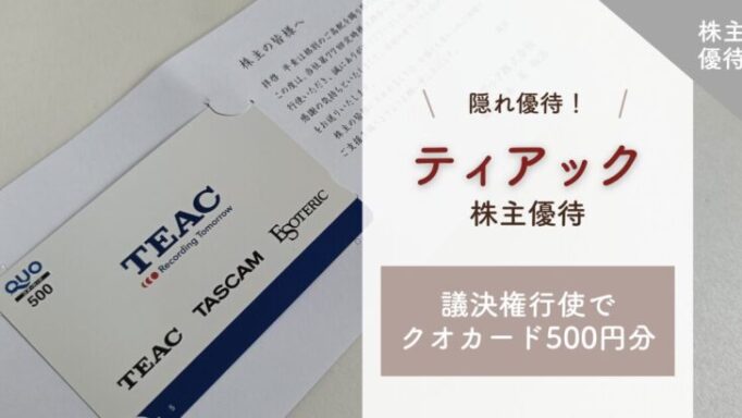 株主優待 株主優待|ティアックの議決権行使でもらえるクオカード500円分!