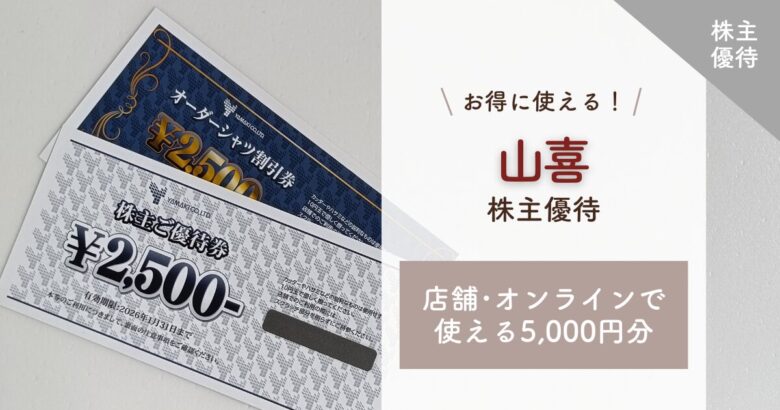 株主優待券はオンラインショップまたは山喜株式会社直営店舗での既製品のみに利用できます。