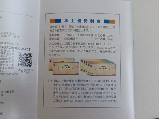 小林洋行からお米券の優待が届きました^^(7月上旬頃)