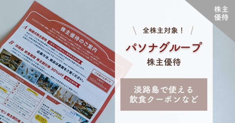 全株主 ・パソナグループ淡路島飲食施設30%OFFクーポン