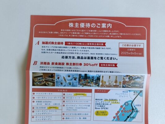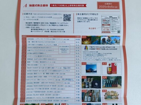 抽選で当たる株主優待(100株以上保有株主が対象)