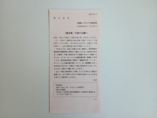 株主優待|大黒屋の隠れ優待はクオカード!議決権行使のお礼で必ずもらえる!